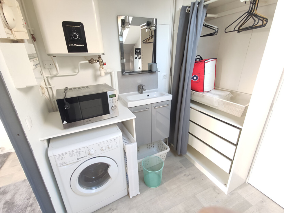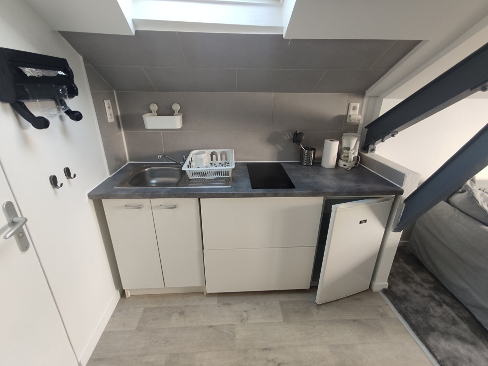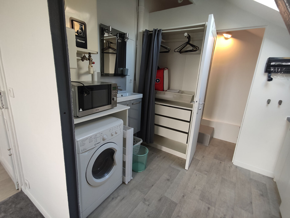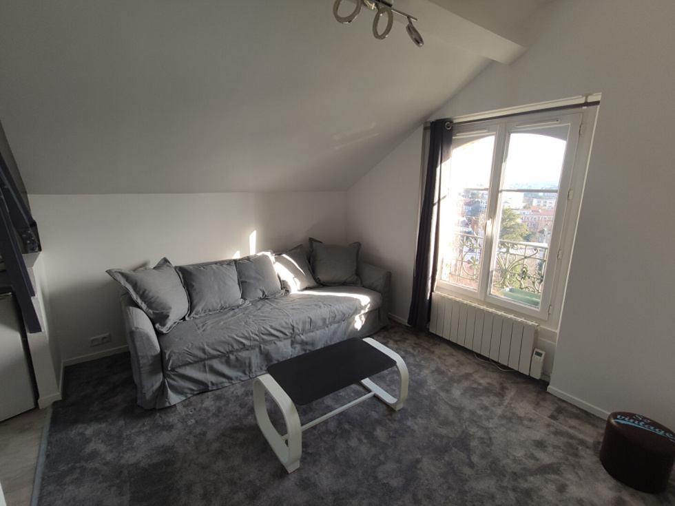 STUDIO .Situé proche de la place Alexandre 1er , au sein d un bel immeuble avec ascenseur, studio meublé au dernier étage de 15m² en bon état général.Pièce principale avec vue dégagée , coin cuisine + lave linge, salle de douche + WC Proche toutes commodités. Chauffage ind électrique. Jardin en copropriété .Disponible